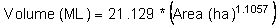 Calculated storage volume (ML) using SKM farm dam surface area/volume relationship: